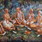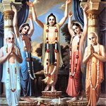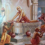 “The Brahma-samhita is a very important scripture. Sri Caitanya Mahaprabhu acquired the Fifth Chapter from the Adi-kesava temple. In that Fifth Chapter, the philosophical conclusion of acintya-bhedabheda-tattva (simultaneous oneness and difference) is presented. The chapter also presents methods of devotional service, the eighteen-syllable Vedic hymn, discourses on the soul, the Supersoul and fruitive activity, an explanation of Kama-gayatri, kama-bija and the original Maha-Visnu, and a detailed description of the spiritual world, specifically Goloka Vrndavana. The Brahma-samhita also explains the demigod Ganesa, Garbhodakasayi Visnu, the origin of the Gayatri mantra, the form of Govinda and His transcendental position and abode, the living entities, the highest goal, the goddess Durga, the meaning of austerity, the five gross elements, love of Godhead, impersonal Brahman, the initiation of Lord Brahma, and the vision of transcendental love enabling one to see the Lord. The steps of devotional service are also explained. The mind, yoga-nidra, the goddess of fortune, devotional service in spontaneous ecstasy, incarnations beginning with Lord Ramacandra, Deities, the conditioned soul and its duties, the truth about Lord Visnu, prayers, Vedic hymns, Lord Siva, the Vedic literature, personalism and impersonalism, good behavior, and many other subjects are also discussed. There is also a description of the sun and the universal form of the Lord. All these subjects are conclusively explained in a nutshell in the Brahma-samhita.” - Srila Prabhupada